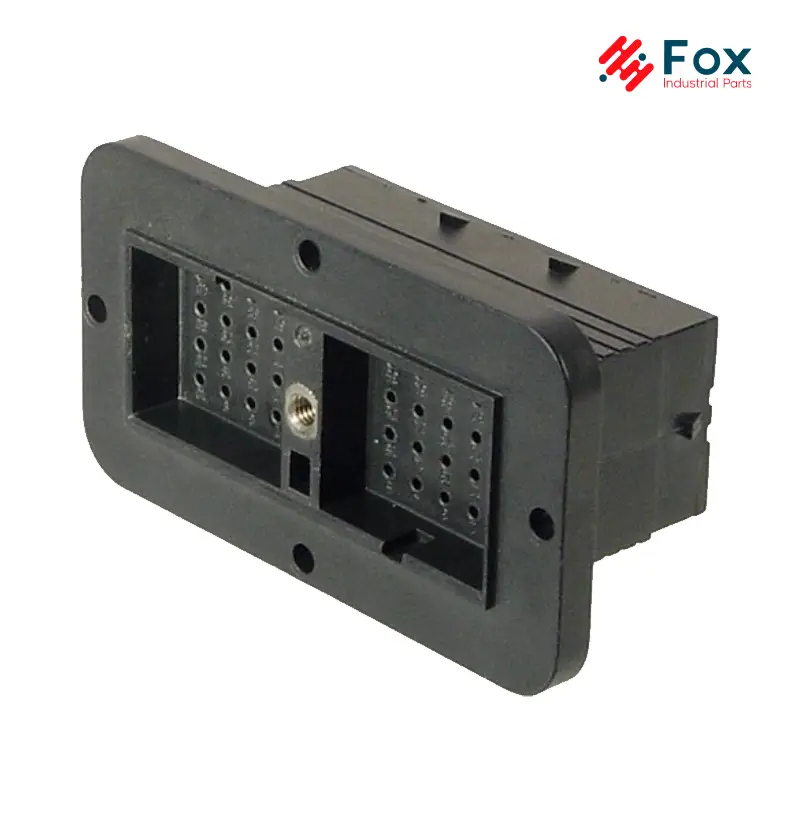 Conector macho de 24 vías, serie DRC, diseñado para aplicaciones eléctricas en vehículos pesados, maquinaria industrial y entornos agresivos. Ofrece una conexión robusta y sellada para condiciones exigentes.